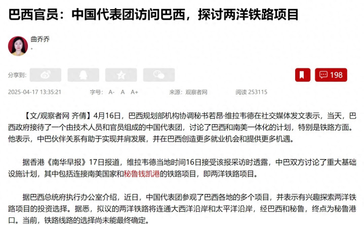 可以说,这是南美寻求摆脱美国控制的一次重大尝试,一旦建成,将帮助南美商品更好的出口至中国,进而实现经济腾飞。