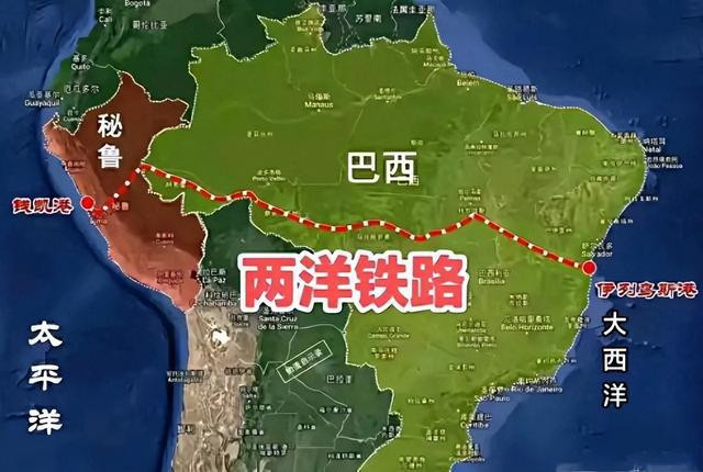 首先,两洋铁路项目项目由巴西方面提出,旨在连接大西洋沿岸和太平洋沿岸,将经过巴西和秘鲁,而终点为秘鲁钱凯港,一旦建成将把整个南美连成一片,并借助钱凯港与世界连接在一起。